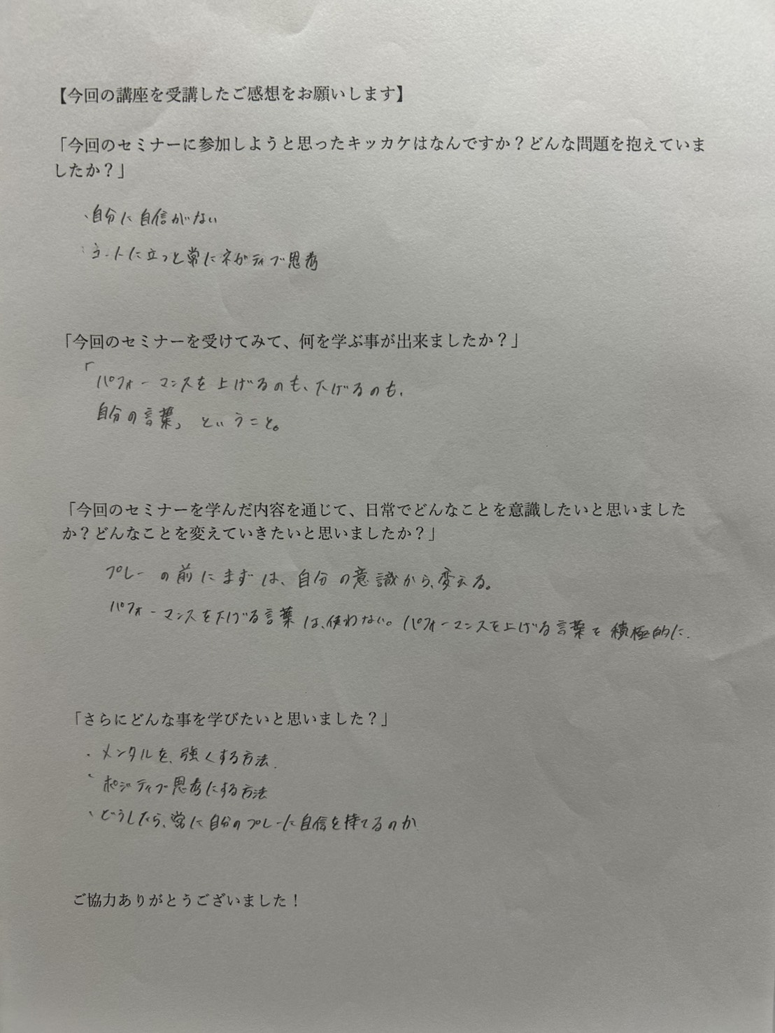 今回のセミナーで学んだ内容を通じて、日常でどんなことを意識しようと思いましたか。どんなことを変えていきたいと思いましたか。